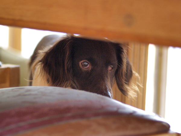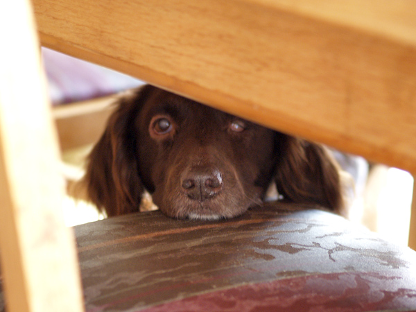 Sie hatte aber keine Lust zu modeln und versteckte sich unter'm Tisch...